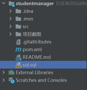 选择本地地址下载完毕后,我们在idea中打开项目,观察目录找到sql文件