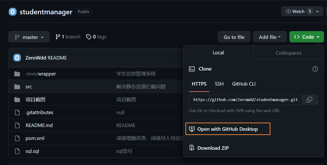 访问源代码链接,将项目下载至本地,在这里我使用的是Github desktop,使用教程不在此赘述。