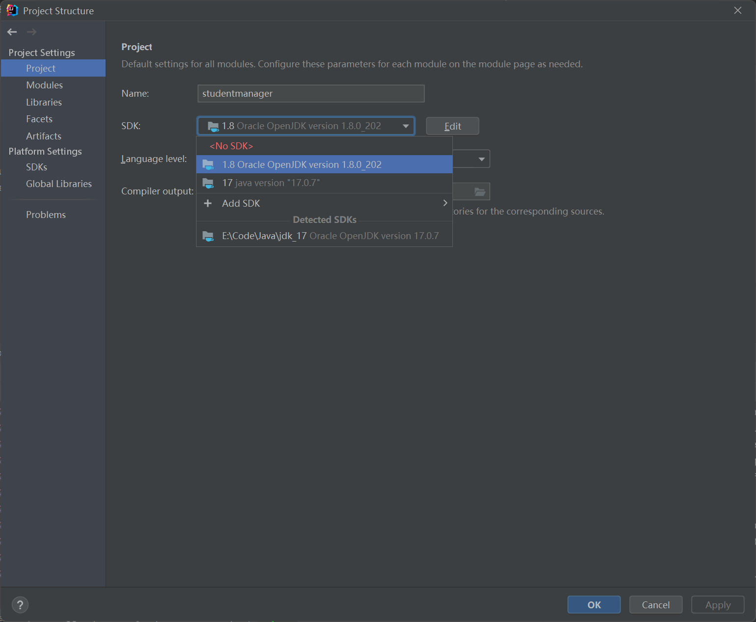 在此仅检查jdk配置为例,File-Setting和Project Structure,按如下步骤检查本地配置是否为项目要求的java1.8