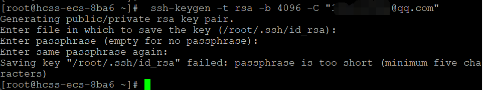 这一步是在询问想将 SSH 密钥保存在哪个文件里。默认路径是 `/root/.ssh/id_rsa`,直接按 Enter 键即可。