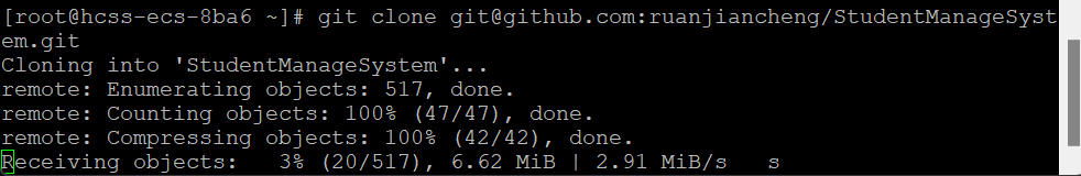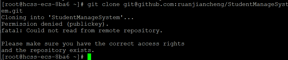 [root@hcss-ecs-8ba6 ~]# git clone git@github.com:ruanjiancheng/StudentManageSystem.git