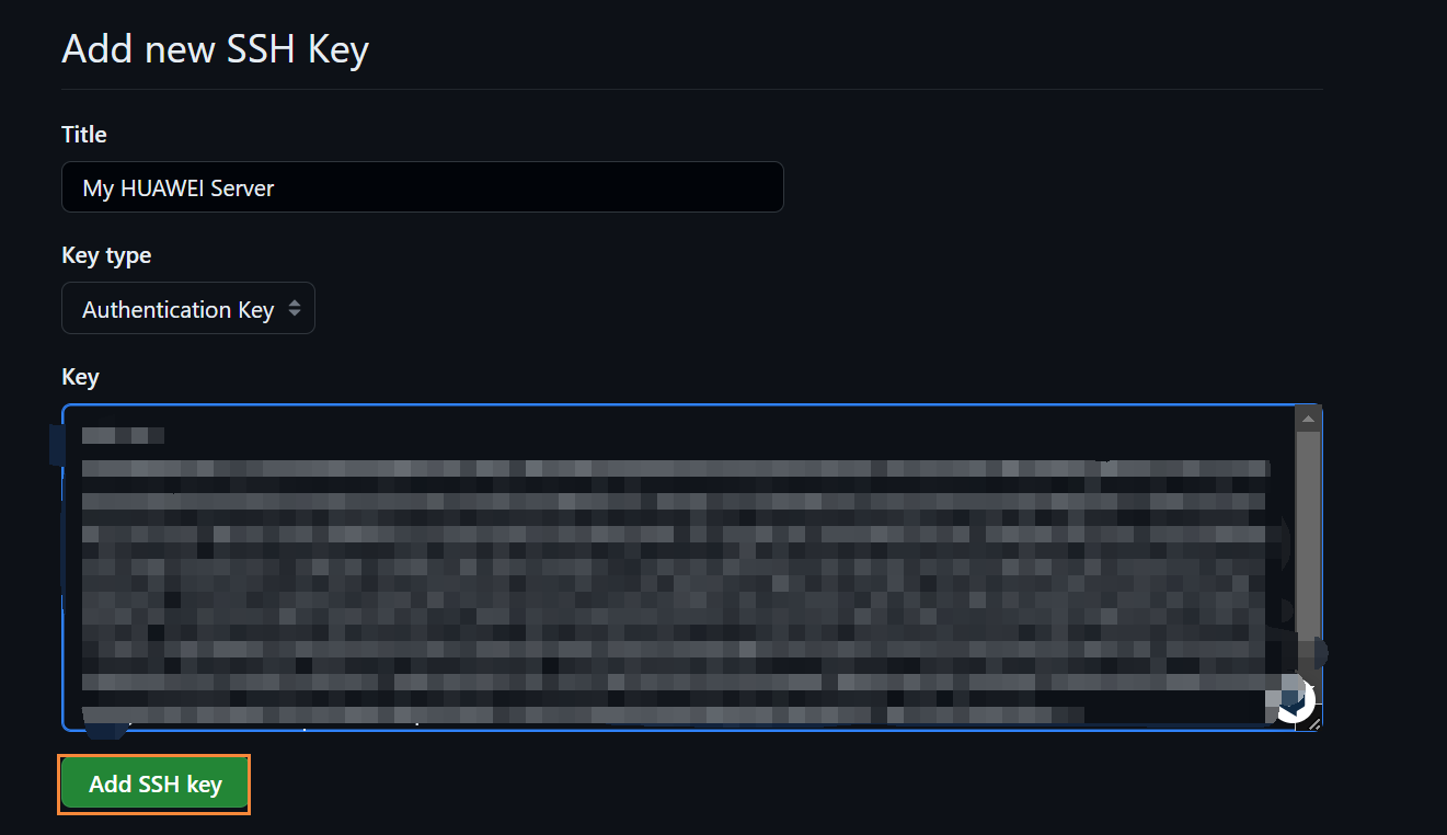 (5)在 "Key" 字段中,粘贴刚才复制的 SSH 公钥。