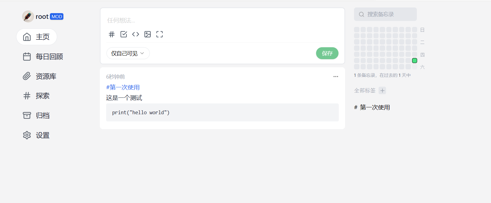 memos除了作为笔记之外,还可以当成一个私人的博客(自己的“树洞”),以及备忘录来使用,它剩余的功能我们可以接下来随便摸索。