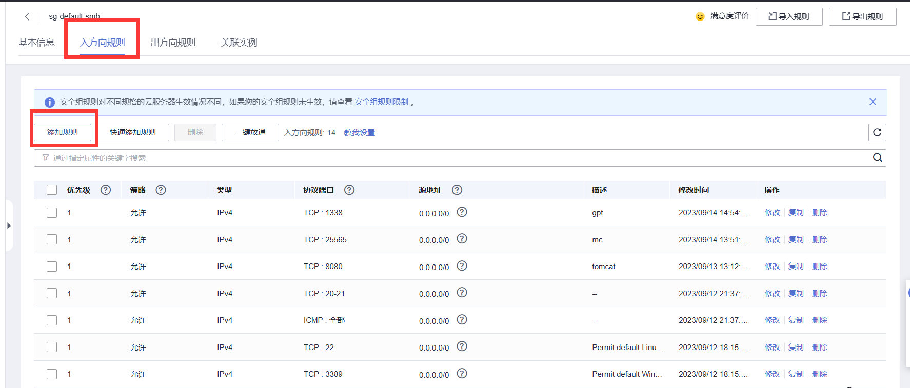 在弹出的页面中选择 入方向规则-添加规则