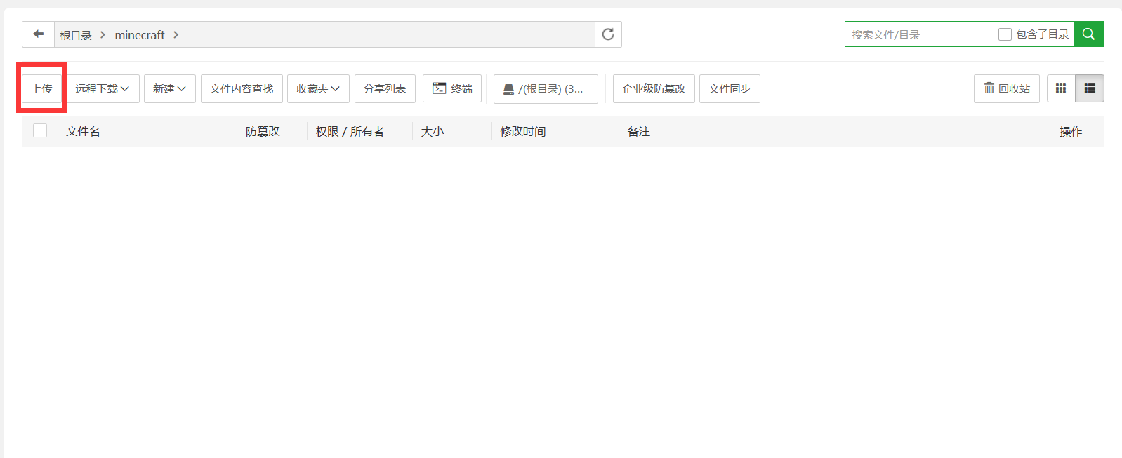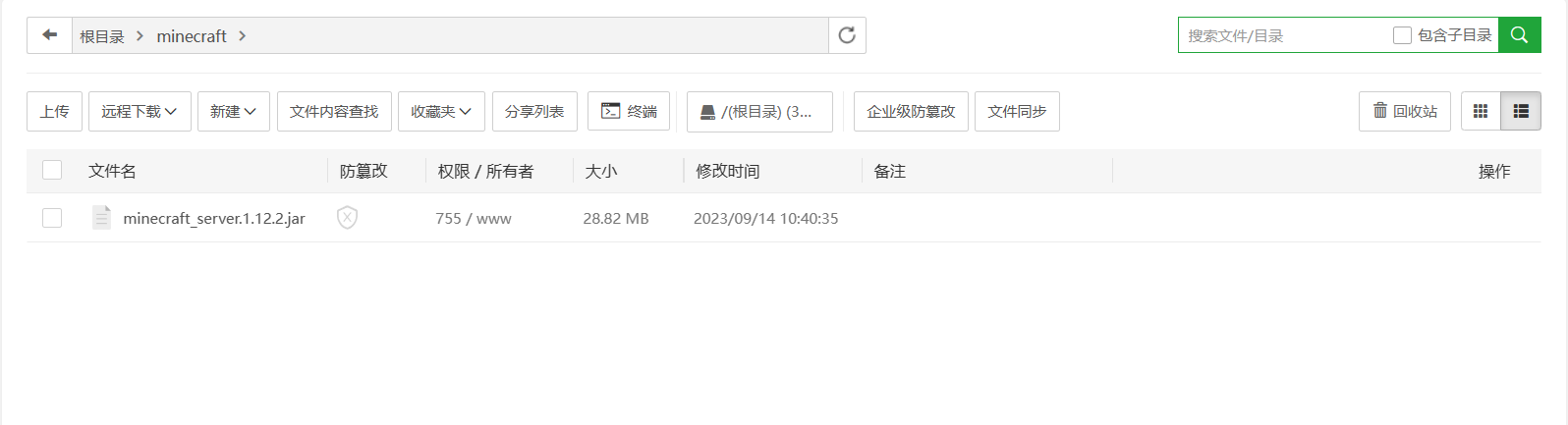 我的文件是位于 根目录/minecraft/minecraft_server.1.12.2.jar 我们需要记住这个路径,之后会用到。