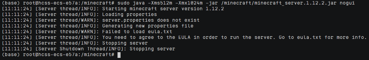 sudo java -Xms512m -Xmx1024m -jar /minecraft/minecraft_server.1.12.2.jar nogui