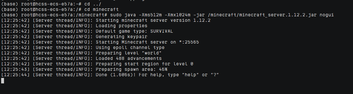 书接上文,我们已经做好了在华为云耀云服务器L实例中开启minecraft服务器的所有准备工作,现在让我们正式在我们的华为云耀云服务器L实例中开启minecraft服务器。