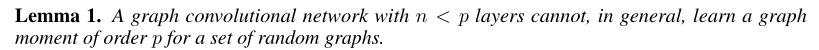 一般来说,对于一组随机图,具有n<p层的图卷积网络不能学习p阶图矩