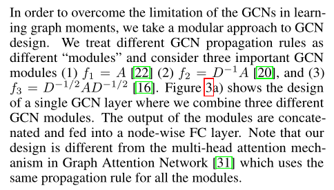 我们的模块化方法证明了使用专门的神经网络进行建筑设计的重要性。由于置换不变性,前馈GCN的表示能力非常有限,在学习图拓扑时可能会失败。然而,通过仔细设计,包括不同的传播规则和剩余连接,可以提高GCN的表示能力,以捕获高阶图矩,同时保持排列不变性。
