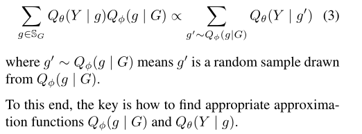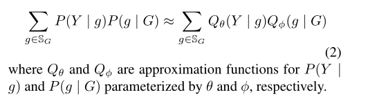 - 一般情况下,由于图的组合复杂性,很难列举出所有可能的g,也很难估计P (Y |g)和P (g |g)的精确值,因此,我们用可处理函数逼近分布: