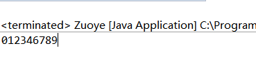 package test; public class Zuoye { public static void main(String[] args) { int i=0; for(i=0;i<=9;i++) { if(i!=5) { System.out.print(i); } } } }