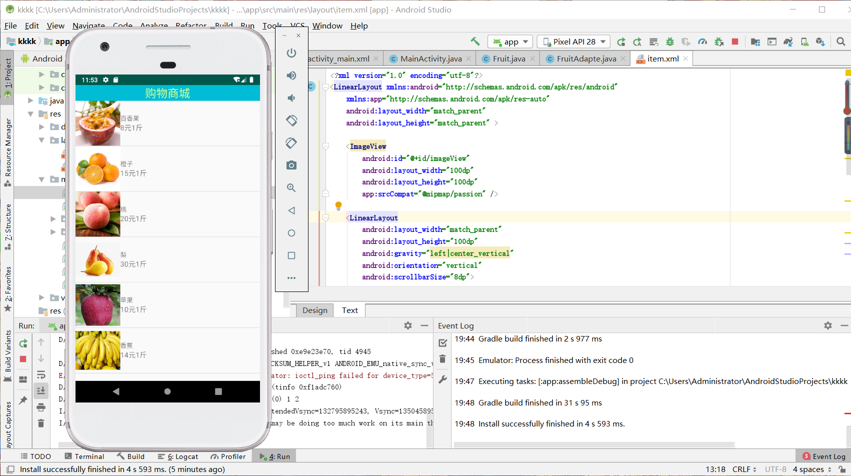 ListView lv = (ListView)findViewById(R.id.fruit_item);