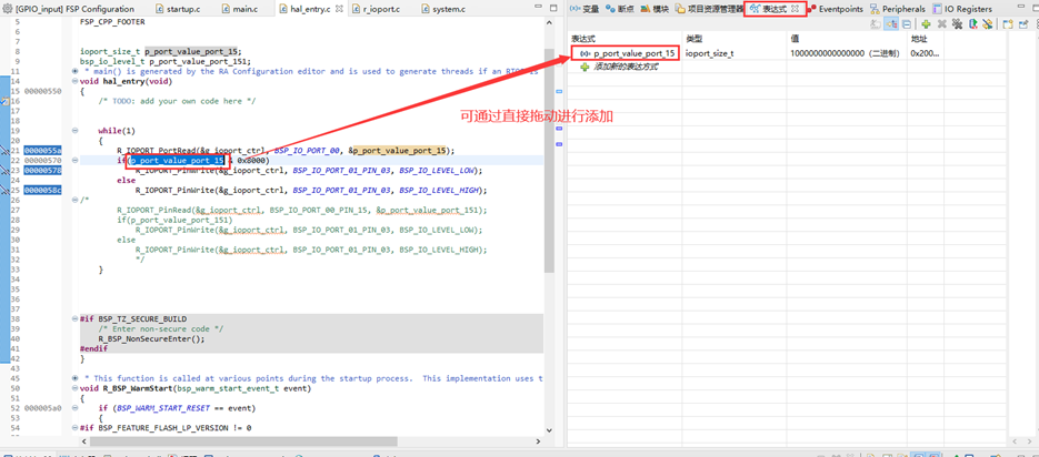 表达式视图在调试期间监视全局变量、静态变量或局部变量的值。为在所有RX调试器中,这些变量(包括作用域内的局部变量)可以设置为实时刷新,设置选择变量,右键->Real-time Refresh可以切换为实时刷新。