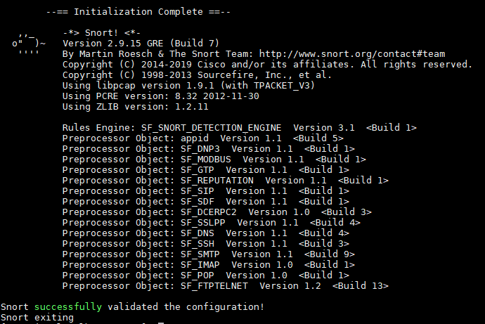 如出现“Snort successfully validated the configuration!”的提示,则表示安装配置成功。