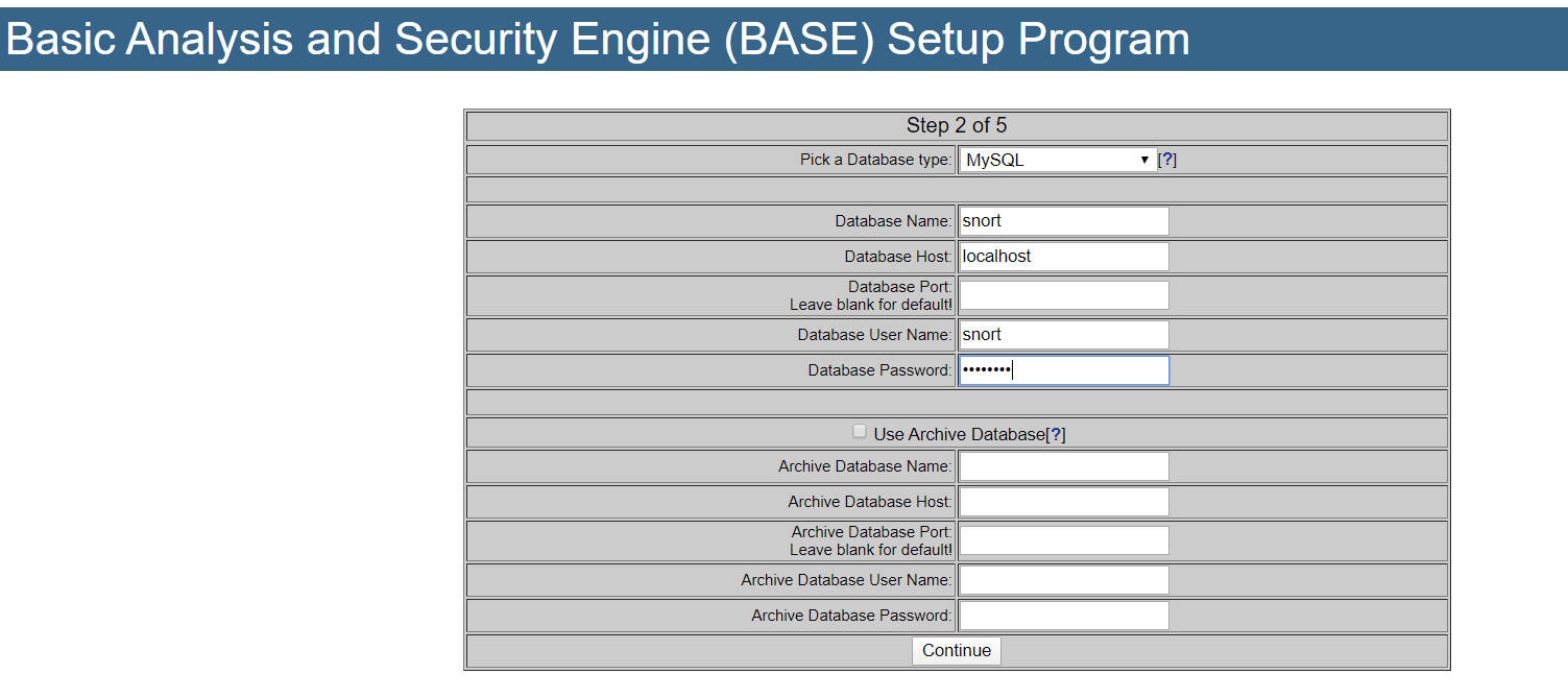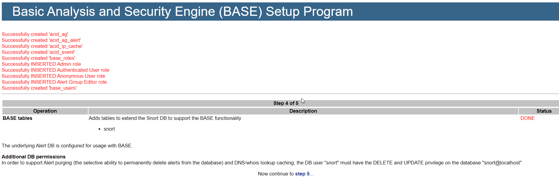 在以上命令中,“******”是MySQL中用户Snort的密码。