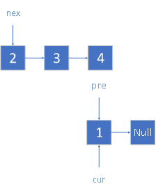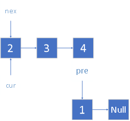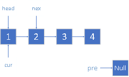 当cur指向null时结束循环,最后可得逆置后的链表:
