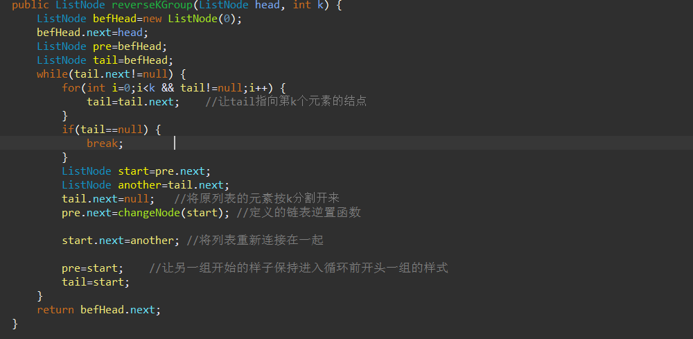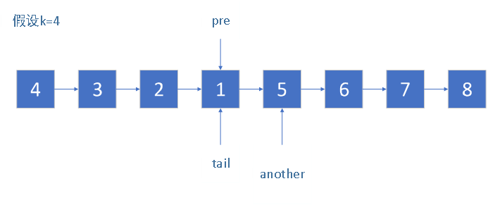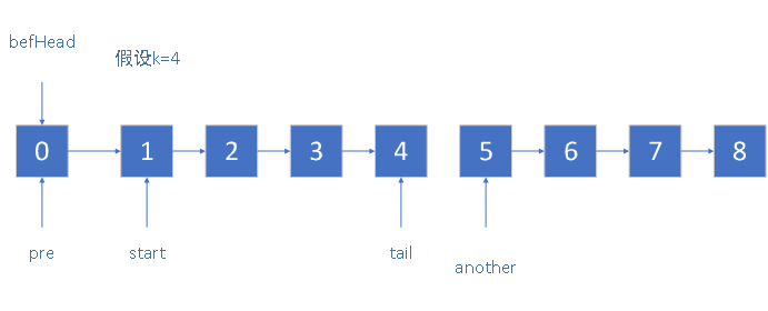 题目大意:链表按每 k 个节点为一组进行翻转,返回翻转后的链表。如果节点总数不是 k 的整数倍,将最后剩余的节点保持原有顺序。