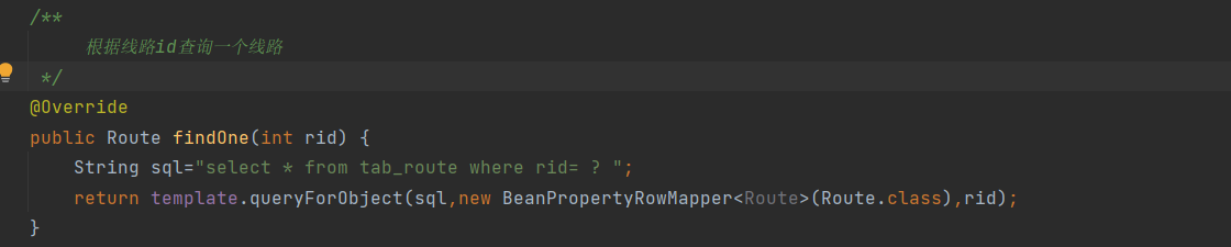 调用各个查询数据库的方法进行查询,并将查询出来的数据通过set()方法赋值到Route的实体对象中,并返回。