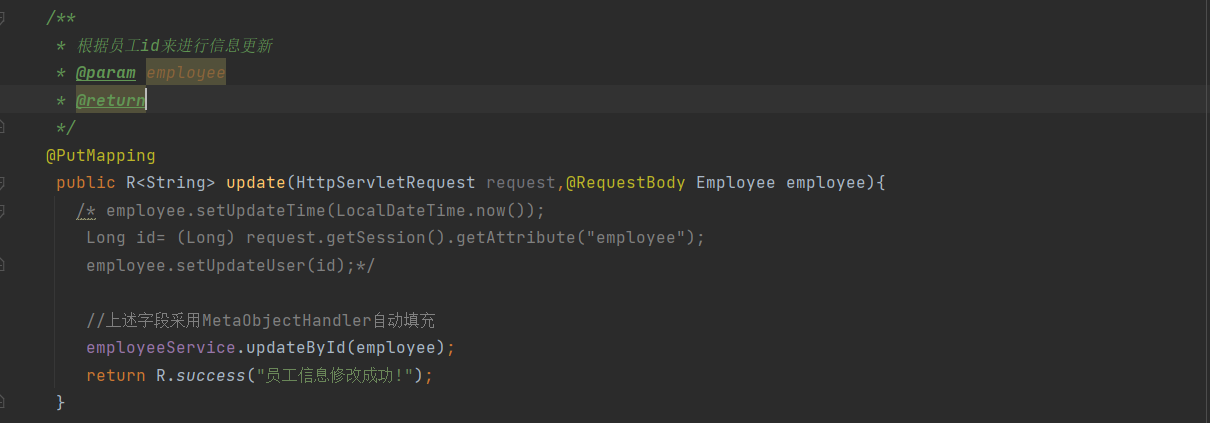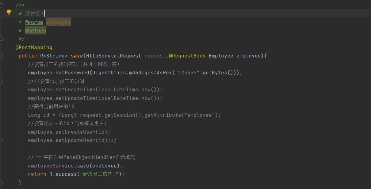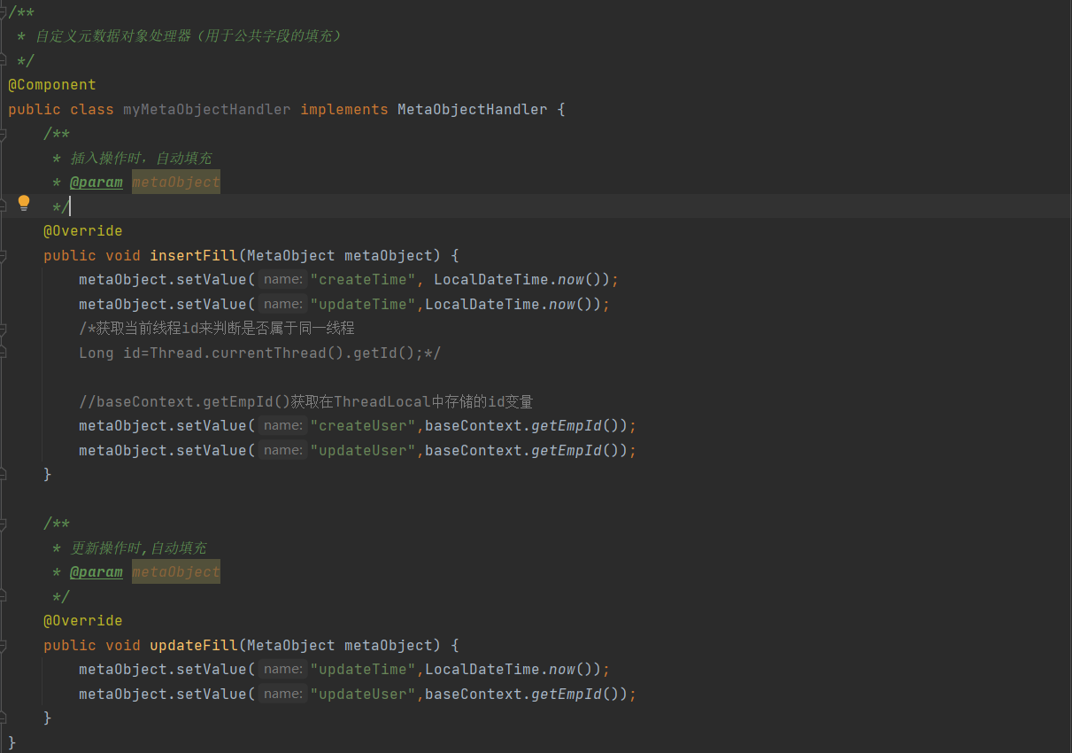 一些公共字段(创建人id、更新人id、创建时间、更新时间)采用上面写的MetaObjectHandler类自动填充进数据库中。