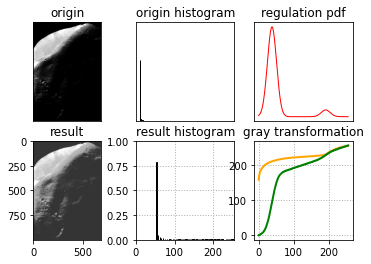 # 窗口显示:原图,原图灰度分布,规定PDF,结果图像,结果图像灰度分布,对应变换函数