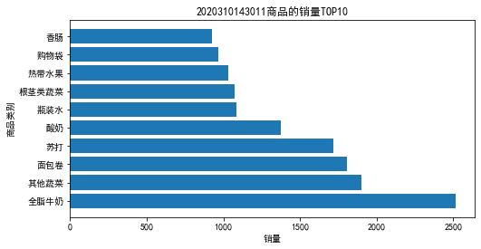 plt.title('2020310143011商品的销量TOP10') # 设置标题
