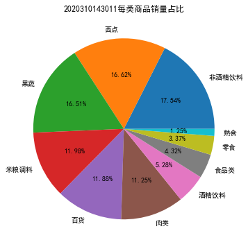 plt.title('2020310143011每类商品销量占比') # 设置标题