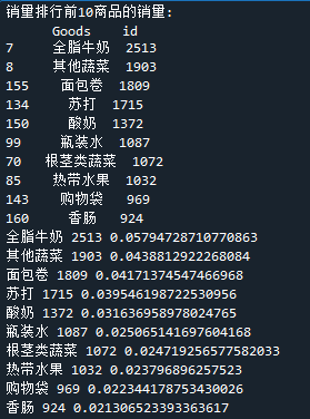 print(row['Goods'],row['id'],row['id']/data_nums)