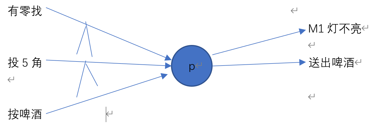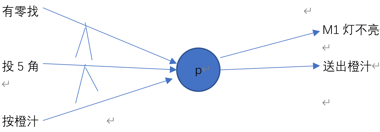 左边为原因,右边为结果,p表示黑盒,正三角表示 且 关系