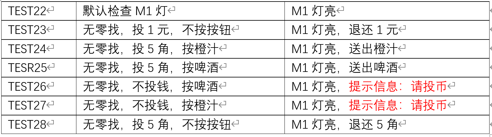 若有零钱找,则‘零钱找完’红灯灭(找零钱指示灯M1灯,M1灯亮表示没有零钱可以找了),在送出饮料的同时退还5角硬币。