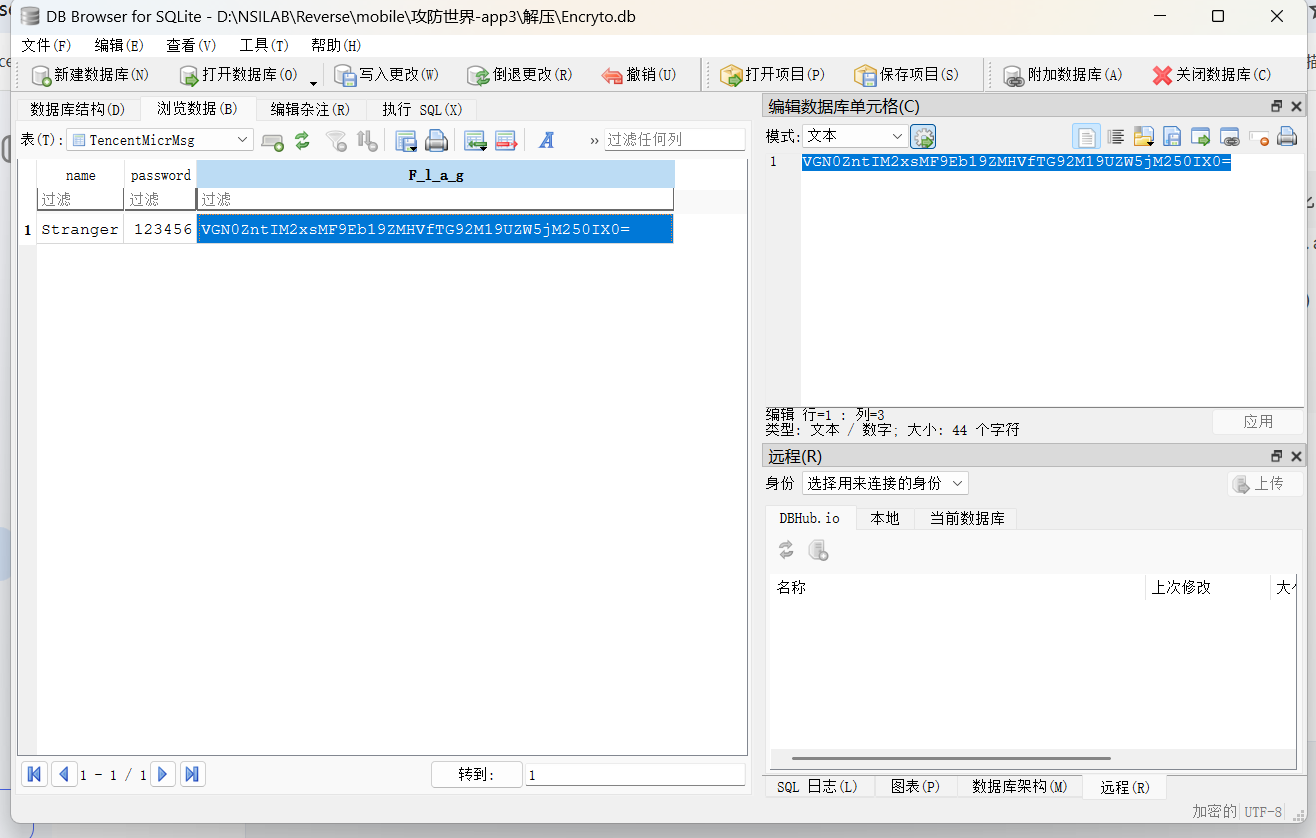 (有个博客说扔进SQLiteStudio打不开,我试了试,雀食),输入得到的密码ae56f99