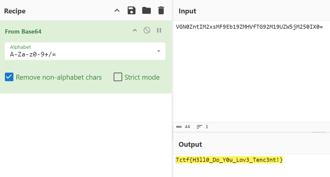 在浏览数据里,得到VGN0ZntIM2xsMF9Eb19ZMHVfTG92M19UZW5jM250IX0=