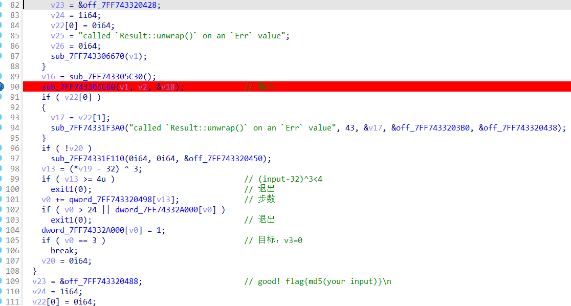 rust一点也不会,对着其他师傅的WP复现了一下。动调找到输入函数和退出点下断点,分析中间的函数。