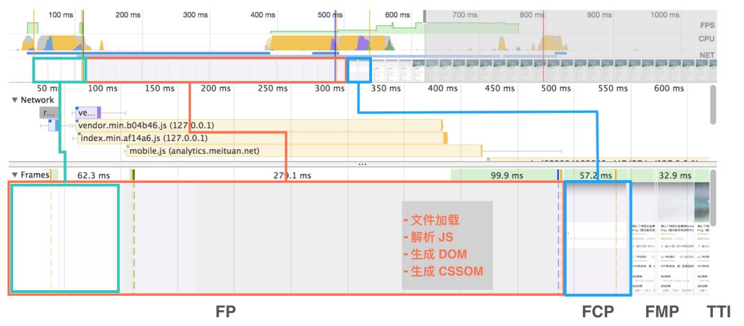 要搞清楚为什么会有白屏,就需要利用这个理论基础来对实际项目进行具体分析。通过 DevTools 进行分析: