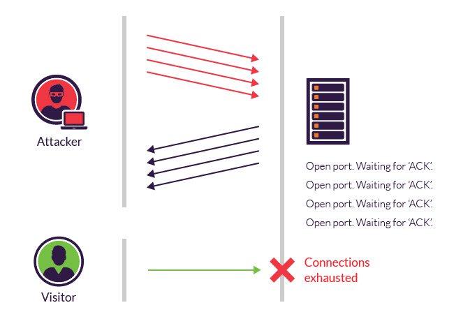 导致服务器存在大量的半开连接,这些半连接可以耗尽服务器资源,使被攻击服务器无法再响应正常 TCP 连接,从而达到攻击的目的