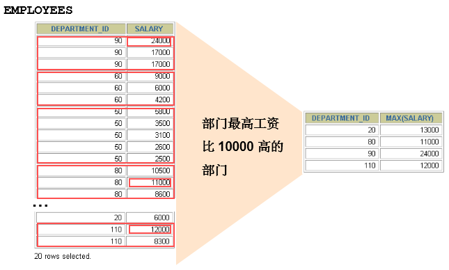 在SELECT列表中所有未包含在组函数中的列都应该包含在 GROUP BY子句中