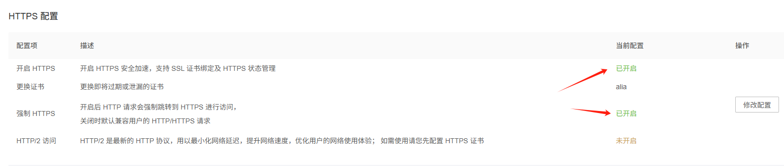 然后会提示配置https中,是黄色的,过几分钟后是绿色的就可以用了