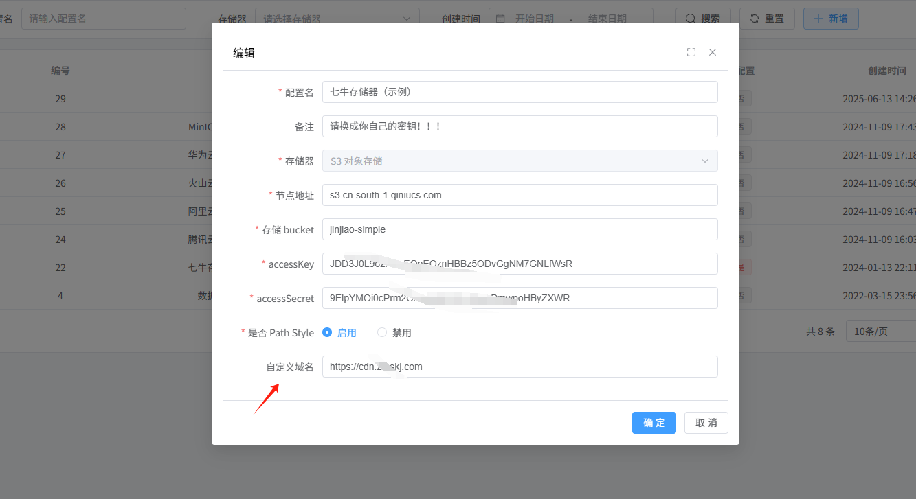 这里先随便填,后面要根据七牛生成的配置进行修改