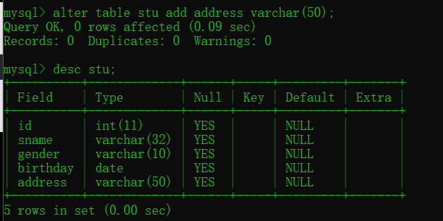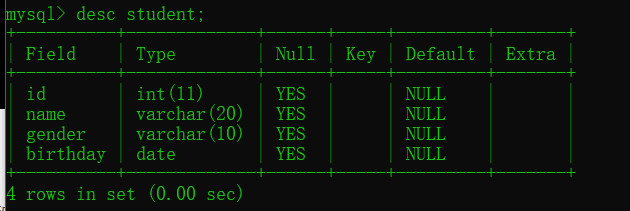 查看表结构