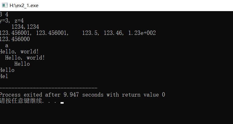 printf("%f, %8f, %8.1f, %0.2f, %.2e\n",f,f,f,f,f);//数据长度超过预留长度时,填充完整数据,数据格式转变时会产生精度损失(以下显示的001)