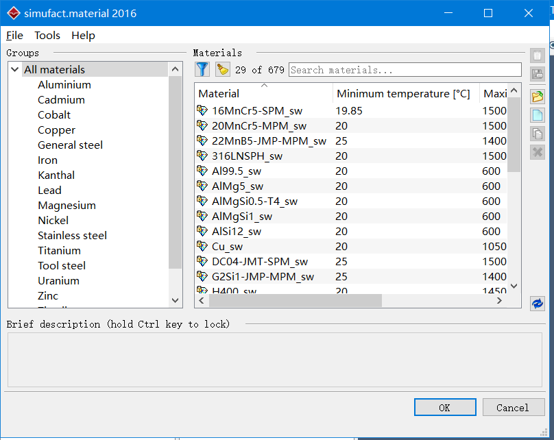 simufact.welding自身带有一个丰富的材料库可供使用,用户可以在这些材料库的基础上自定义特种材料。