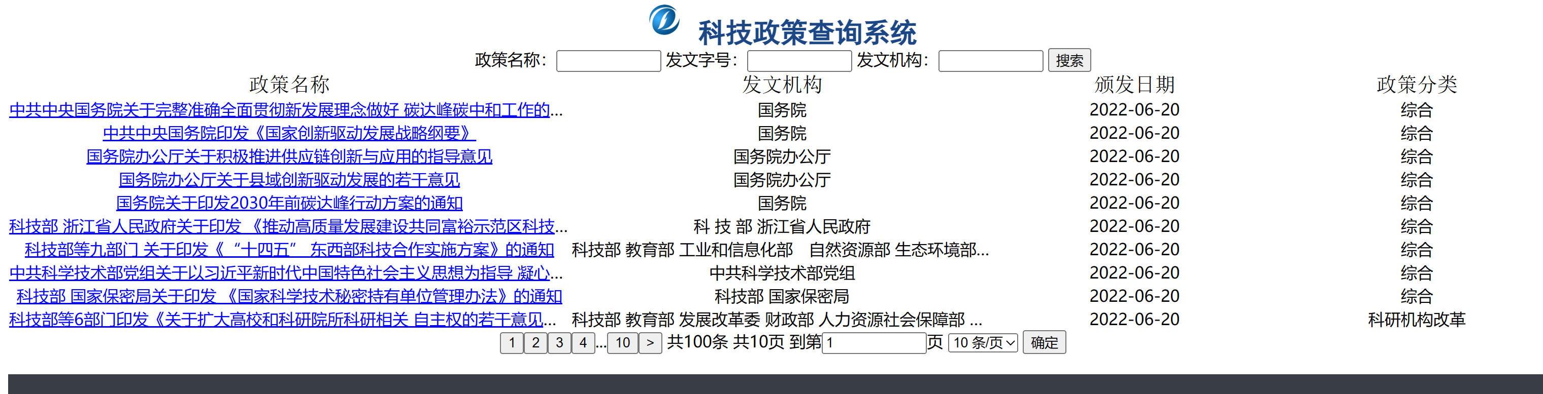 科技政策查询系统优化 (排序与隐藏文字显示的)