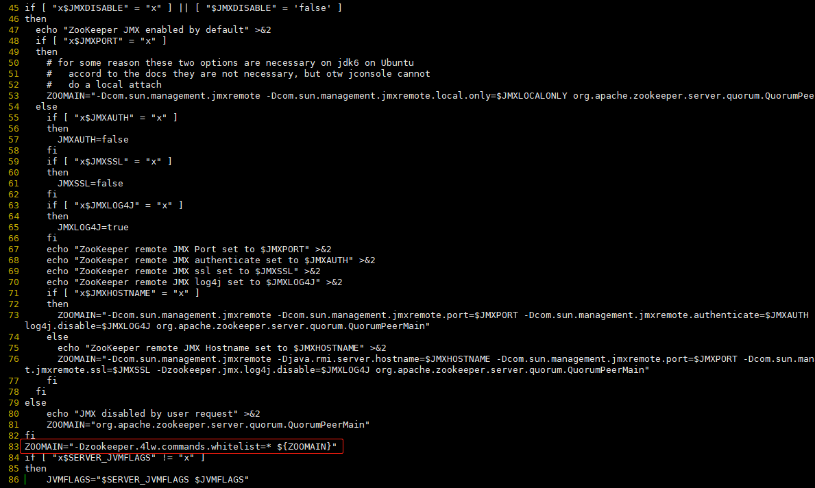 ZOOMAIN="-Dzookeeper.4lw.commands.whitelist=* ${ZOOMAIN}"