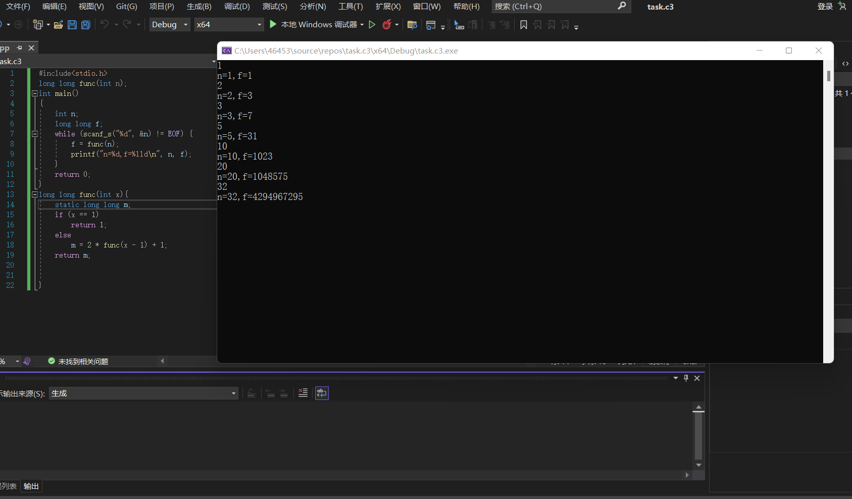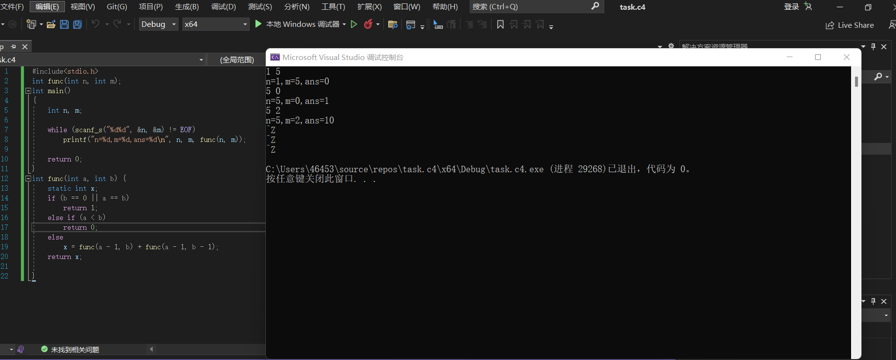 printf("n=%d,m=%d,ans=%d\n", n, m, func(n, m));