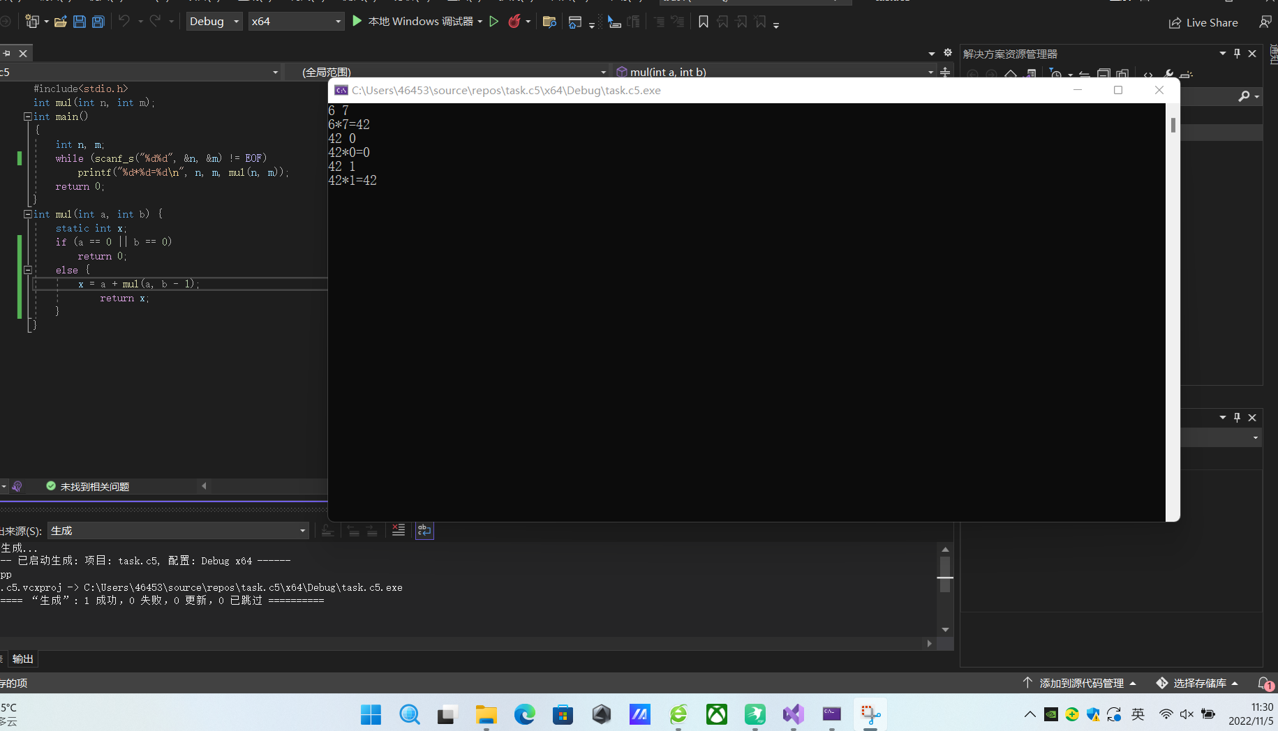 printf("%d*%d=%d\n", n, m, mul(n, m));