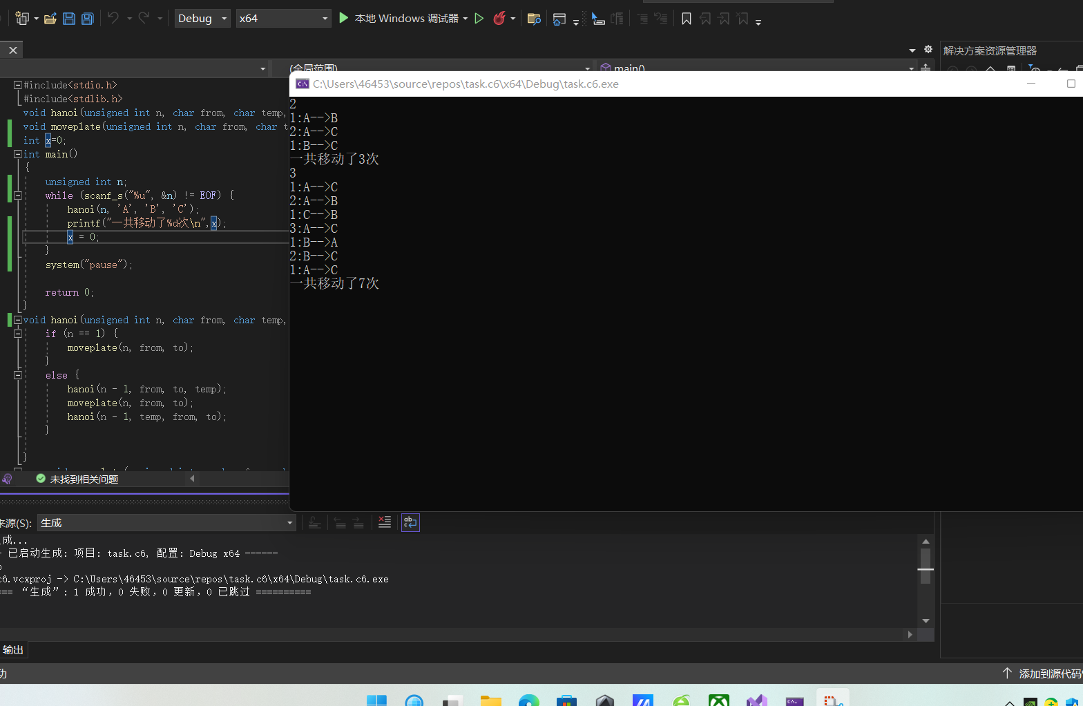 void hanoi(unsigned int n, char from, char temp, char to) {