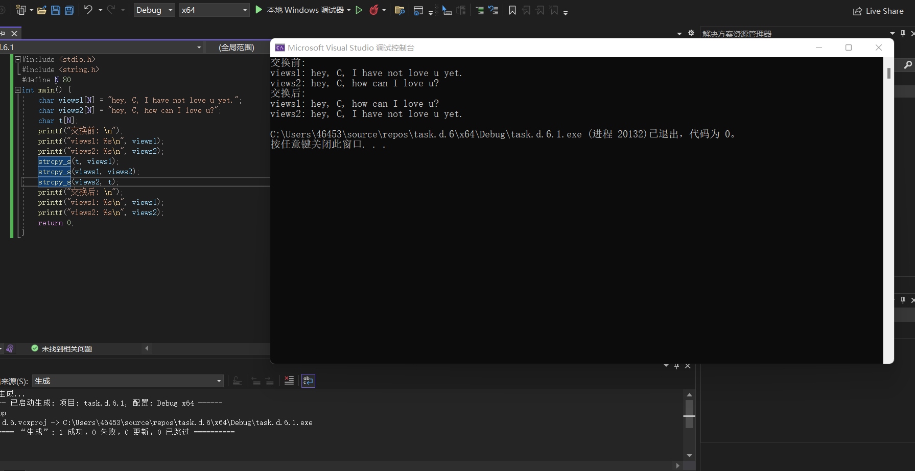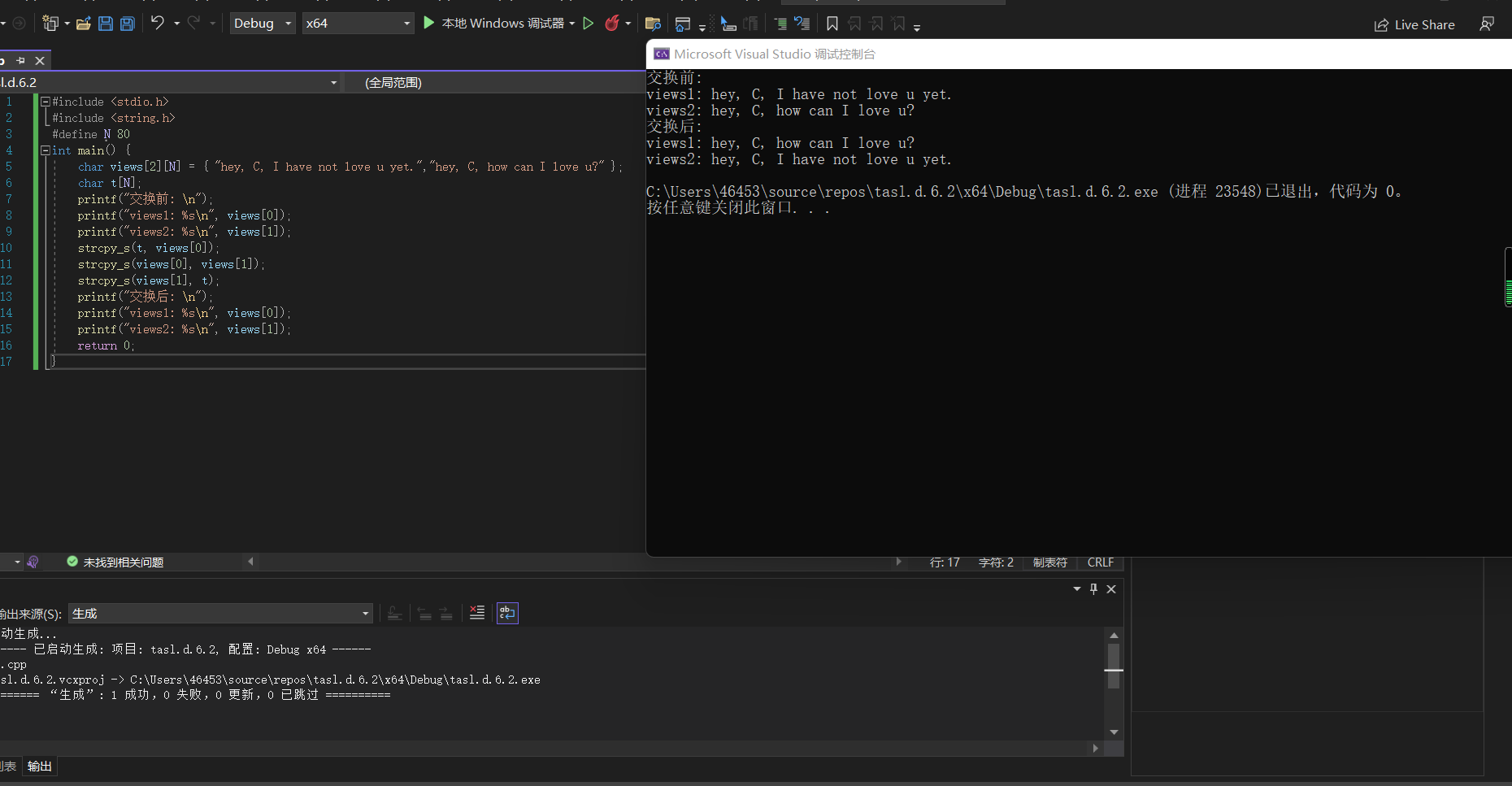 char views[2][N] = { "hey, C, I have not love u yet.","hey, C, how can I love u?" };
