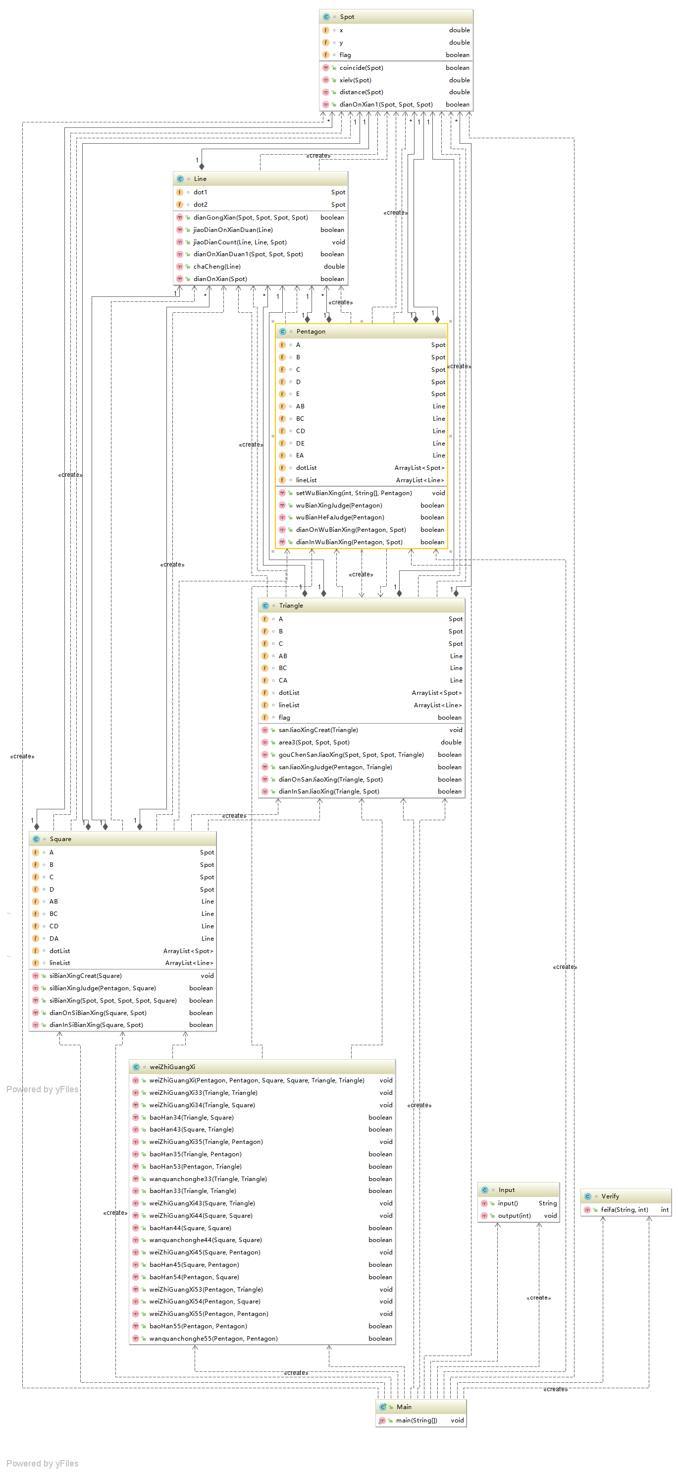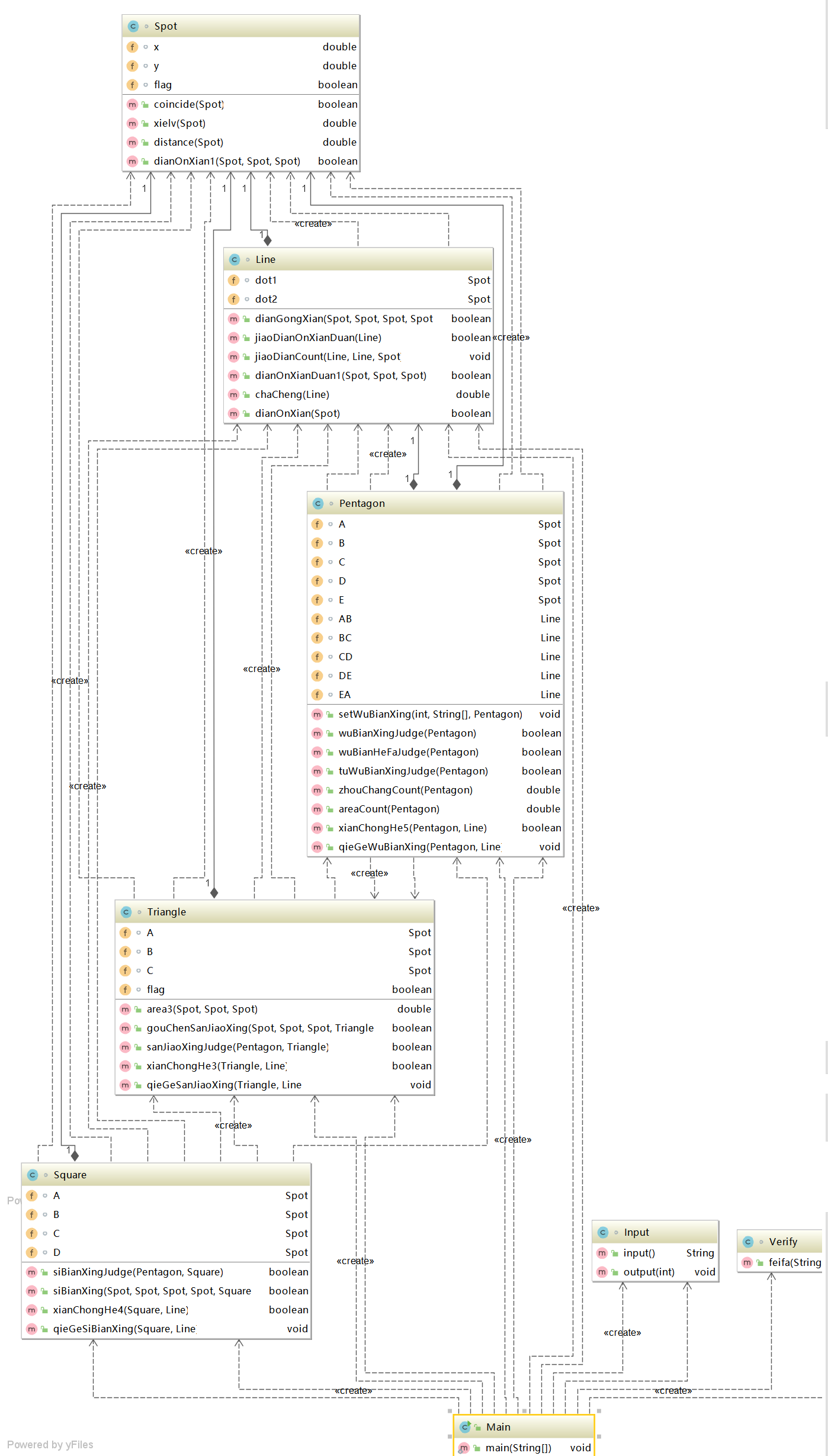 主类:包含一个静态主方法,用来将点类、面类和线类联系在一起;