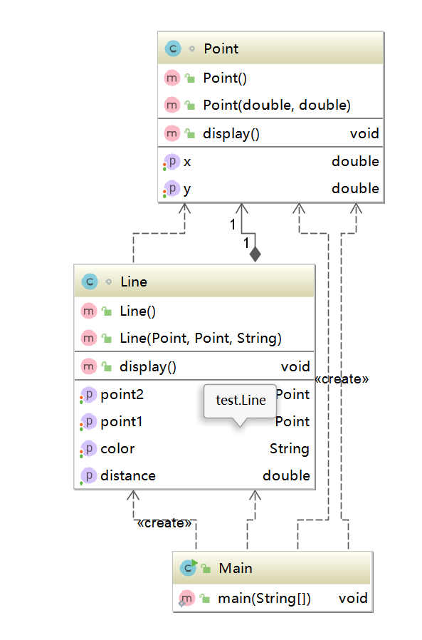 主类:包含一个静态主方法,用来将点类和线类联系在一起;