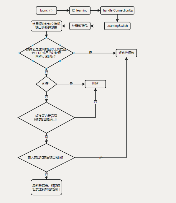 阅读L2_learning模块代码,画出程序流程图,使用 tcpdump 验证Switch模块。