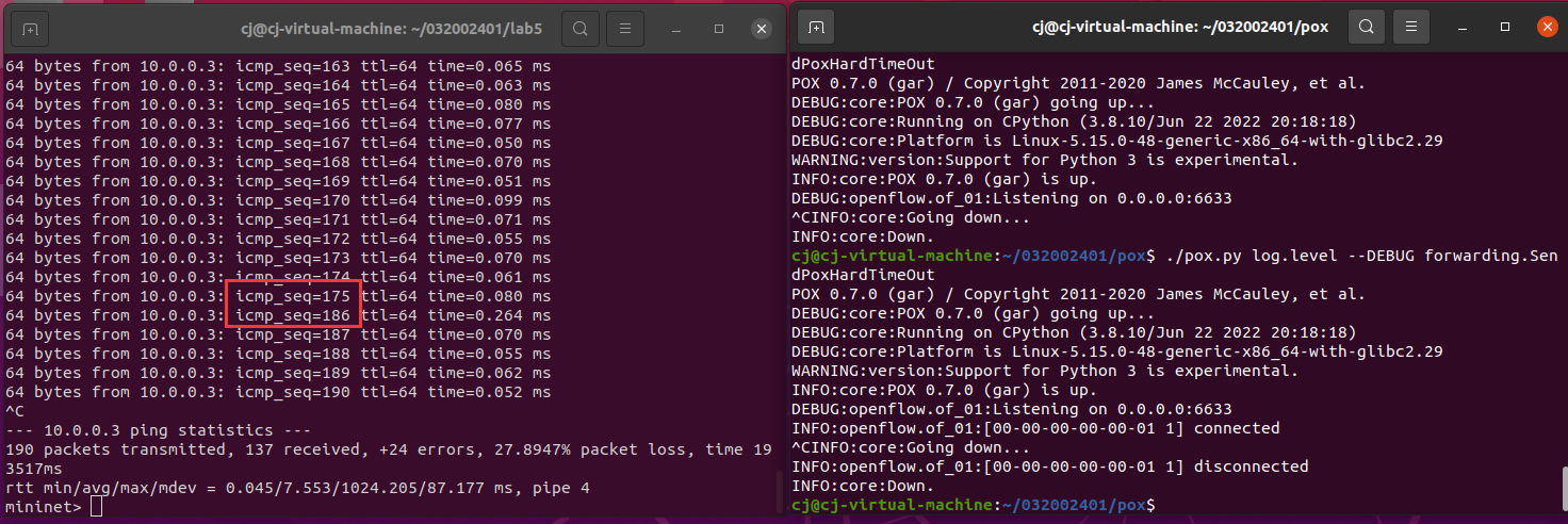 通过验证POX的forwarding.hub和forwarding.l2_learning模块,初步掌握POX控制器的使用方法;